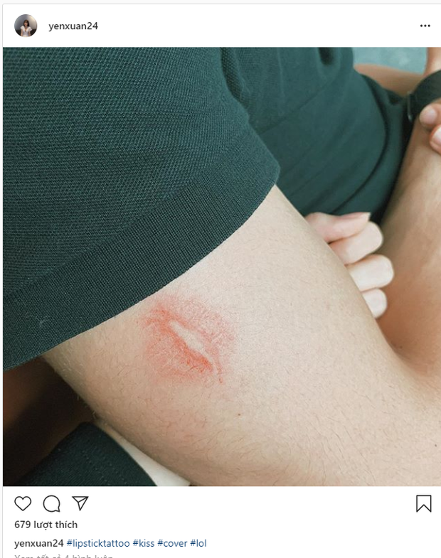 Yến Xuân đăng ảnh "xăm môi" lên bắp tay phải của Văn Lâm.
